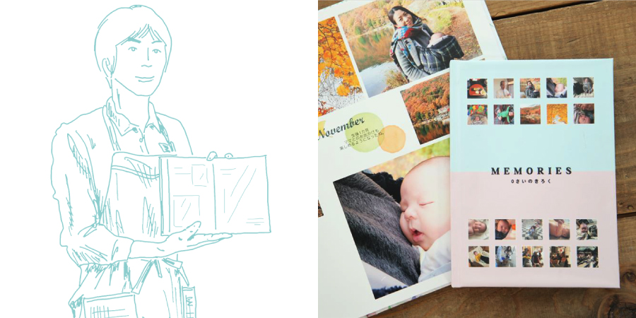 なかなか写真を整理する時間のないママの味方!Year Album(イヤーアルバム)は、たくさんの画像データのなかから最適な写真を選び、時間や被写体別に自動的にアルバムにしてくれる魔法のアルバム。店頭やスマホ、PCから直接作成いただけます。