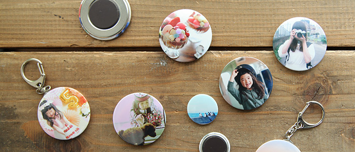 スマホやデジカメなどで撮影した画像から、オリジナル缶バッジを最短15分より作れます。
