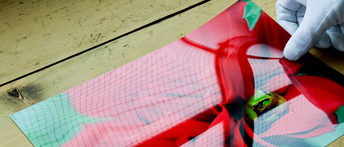 プリントは、表面が滑らかで反射率が高いほど画像がクッキリと鮮やかに見えるという特性があります。そこでクリスタルプリントは平滑性に優れたポリエステルベースを使用。色彩の冴え、優れた階調描写、際立つシャープネス、作品の持つ輝き度や透明感まで忠実に再現してくれる、それがクリスタルプリントです。