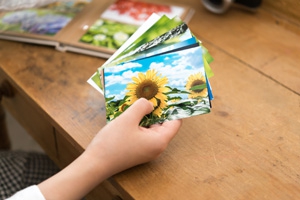 写真の表面が、通常の光沢プリントではなく「マット調」のプリントです。昔なつかしい「フチあり」プリントがオススメです。