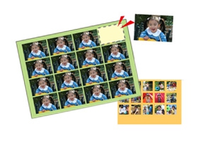 デジタルカメラ、スマートフォンで撮った写真を小さなサイズでプリントできます。2分割から多分割までお好みのサイズに分割できるからアイデア次第でいろんな楽しみ方ができます。また、レイアウトする画像も、同じ画像や、それぞれ違う写真でも作れます。