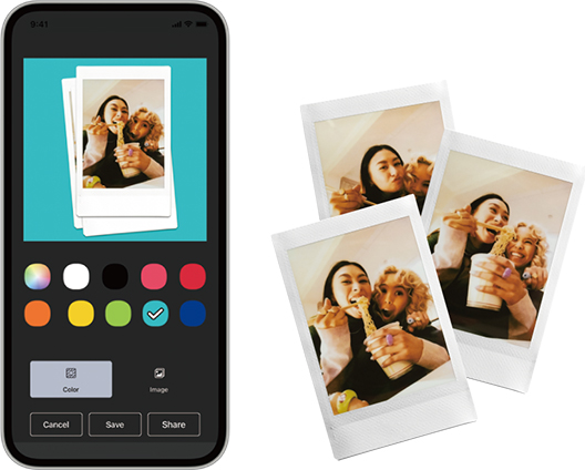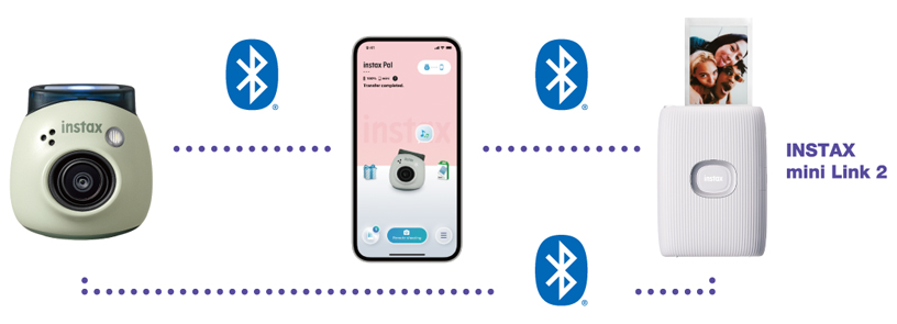 撮影画像はINSTAX PalTM専用アプリに、チェキフレーム付きで自動転送。