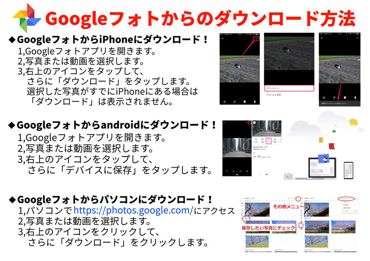 googleフォト ダウンロード手順