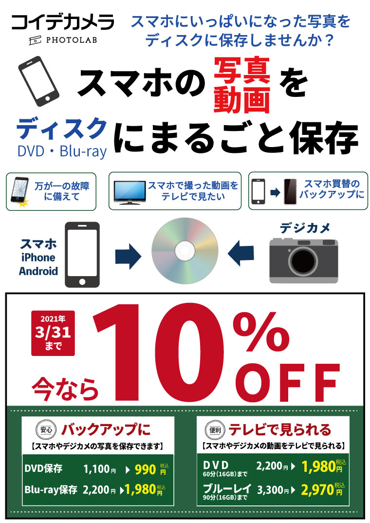 スマホでいっぱいになった写真をディスクに保存しませんか。