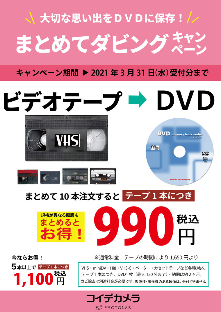 【まとめてお得!】ビデオテープ ダビングキャンペーン