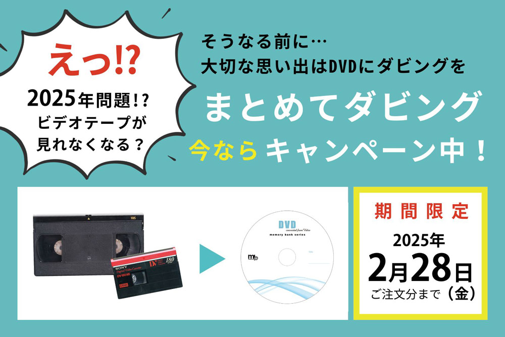 ※当キャンペーンは、1本のテープにつき1枚のDVDへの書込みとなります。複数のテープをまとめることはできません。