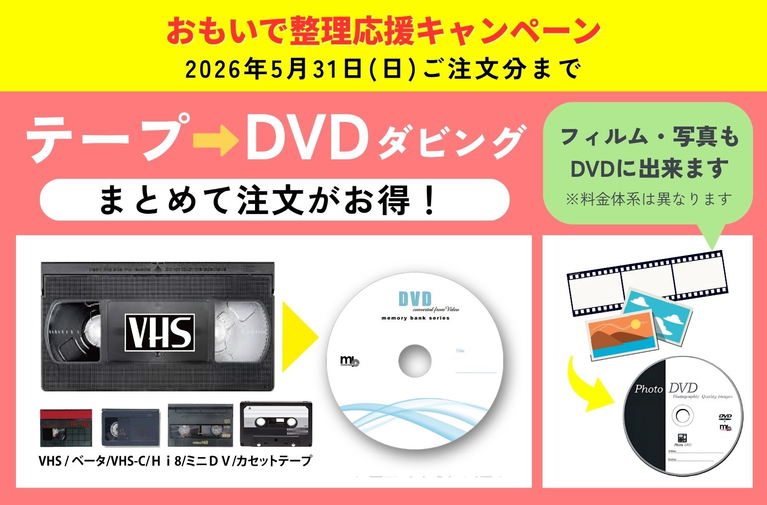 ※当キャンペーンは、1本のテープにつき1枚のDVDへの書込みとなります。複数のテープをまとめることはできません。