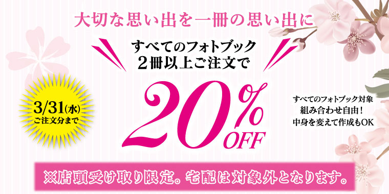 <店頭受け取り限定!>フォトブック2冊以上のご注文で20%OFF!
