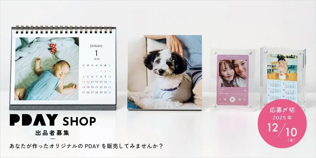 PDAY SHOPでは、オリジナルのカレンダー、トレカ、デコール(木製パネル)を販売していただける出品者を募集します。