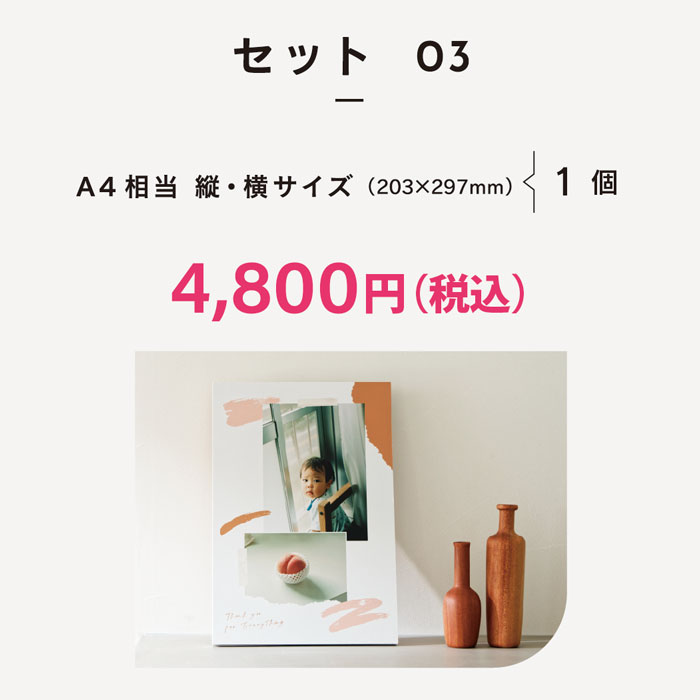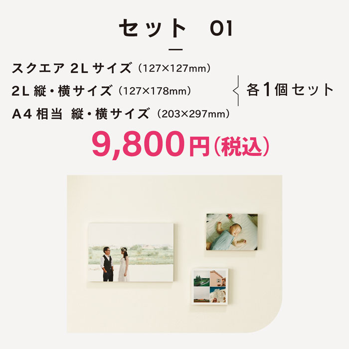 | スクエア2Lサイズ(127x127mm) 2L 縦・横サイズ(127x178mm) A4相当 縦・横サイズ(203x297mm) 【各1個セット】 |
