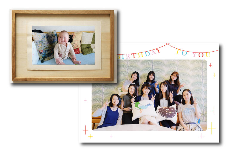 写真を保存したり、贈ったり、飾ったりする用途に合わせて、好きな写真・大切な写真で簡単・すぐにカタチにすることが出来ます。