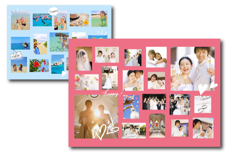 あらかじめ決められたデザインに写真を入れるだけで簡単コラージュ。