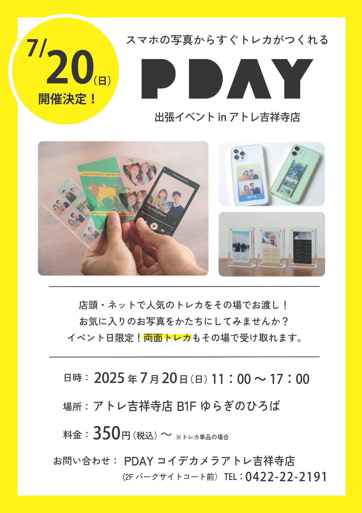 PDAYコイデカメラアトレ吉祥寺店が店舗を飛び出し、アトレ吉祥寺店 B1F ゆらぎの広場にて