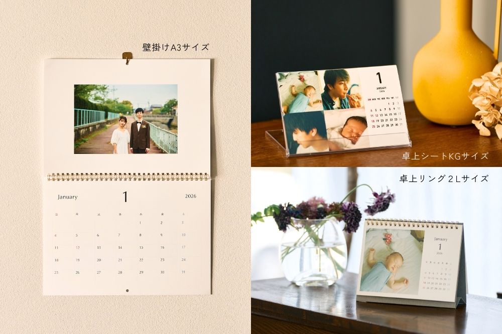 トレカ、カレンダー、写真パネルを1個から作成可能な写真をカタチにするサービスです。