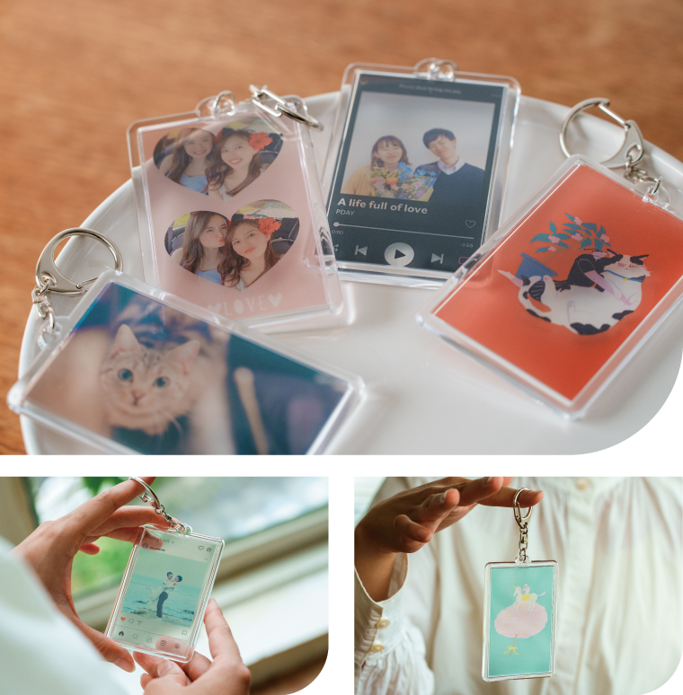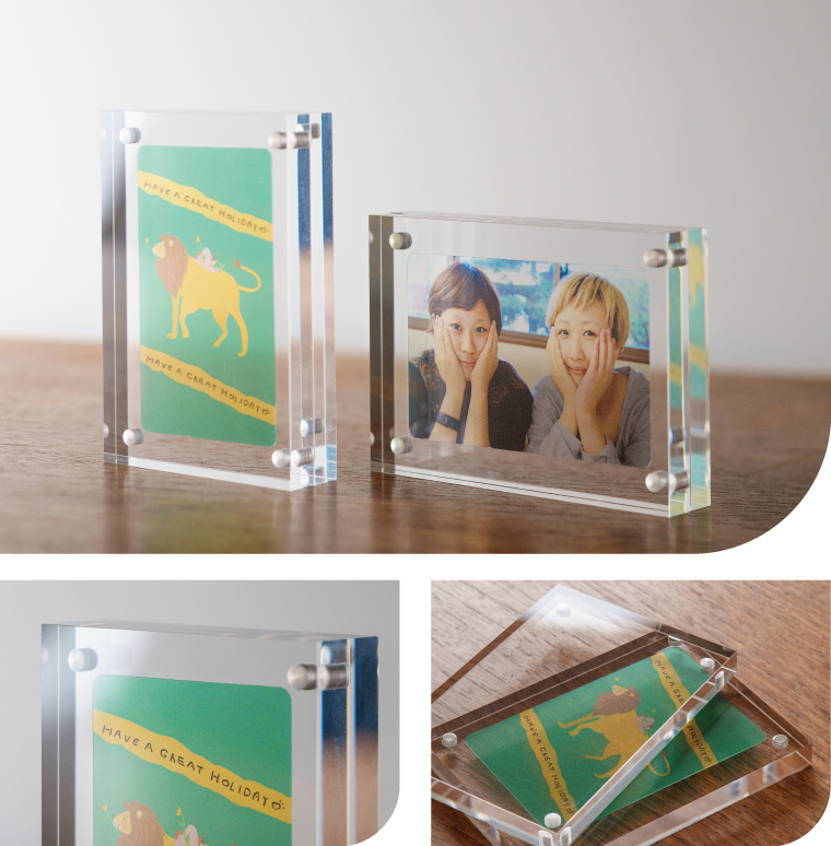 トレカ、カレンダー、写真パネルを1個から作成可能な写真をカタチにするサービスです。