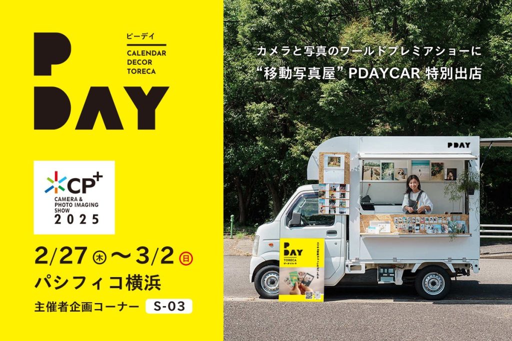 1951年創業で関東に店舗を展開する老舗写真店の株式会社コイデカメラ(本社:東京都杉並区、代表:小出剛三)は、有限会社モノグラム(本社:愛知県名古屋市、代表:佐藤嘉宏)企画・プロデュースのカレンダーやトレカをはじめとした写真サービス「PDAY」。2025年2月27日(木)から3月2日(日)の4日間、パシフィコ横浜で開催の「CP+2025」会場にPDAYを体験できる”移動写真屋”「PDAYCAR」が特別出店いたします。