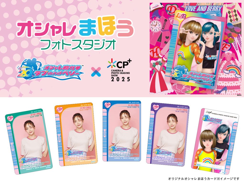 2/27(木)〜3/2(日)の4日間、パシフィコ横浜で開催されるカメラと写真のワールドプレミアショー「CP+(シーピープラス)2025」会場に”移動写真屋”「PDAYCAR」が特別出店いたします。会場では、通常のトレカはもちろん、同会場の特設コーナー「オシャレ魔女 ラブandベリー」やCP+公式キャラクター「カメラッコ」デザインのテンプレートをご用意。撮影コーナーもご用意していますので、その場で記念撮影した写真から、すぐにオリジナルトレカをおつくりいただけます。