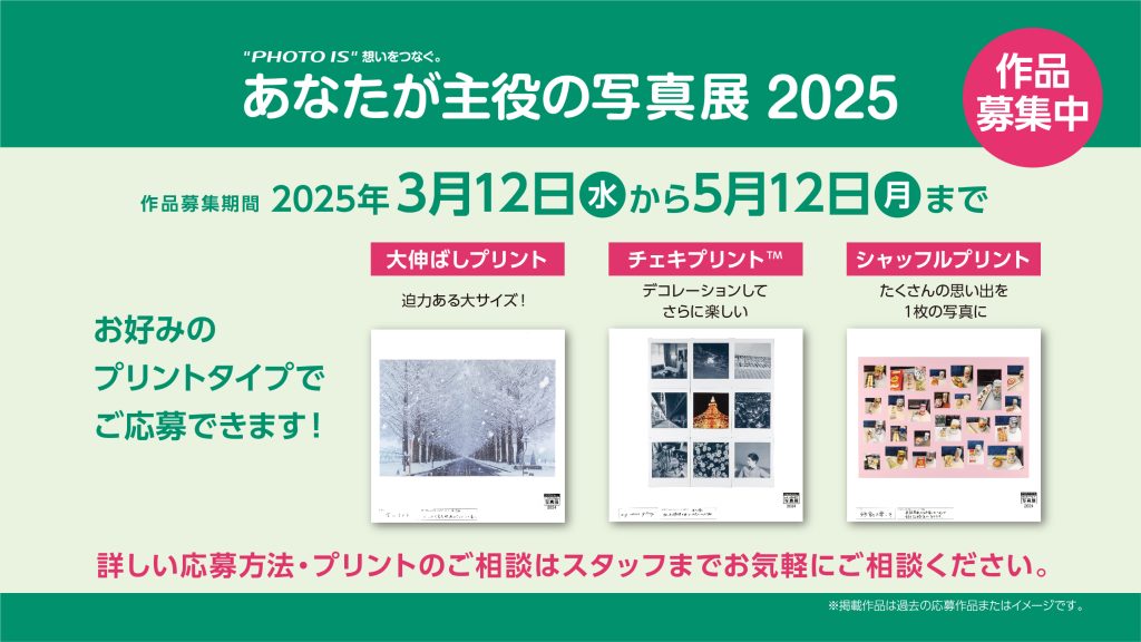 どなたでも応募できる写真展です。応募作品は、写真に込められた想いと共に展示します。デジタルカメラはもちろん、スマートフォンやチェキで撮影した写真でも簡単にご応募いただけます。