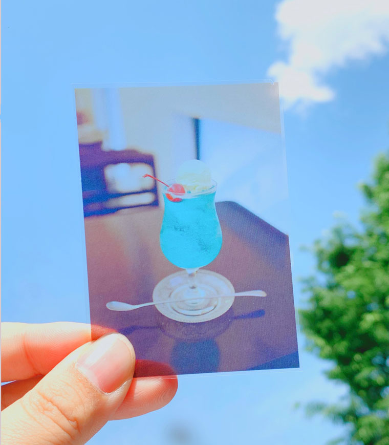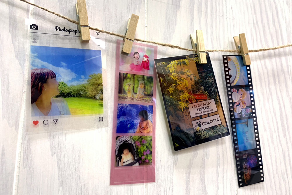 - 透明のフィルムに写真を印刷するので、今までの写真の風合いと違う新しい楽しみ方ができます。