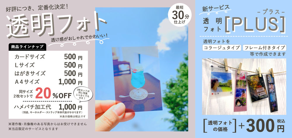 新サービス!!透明フォト[PLUS](プラス)