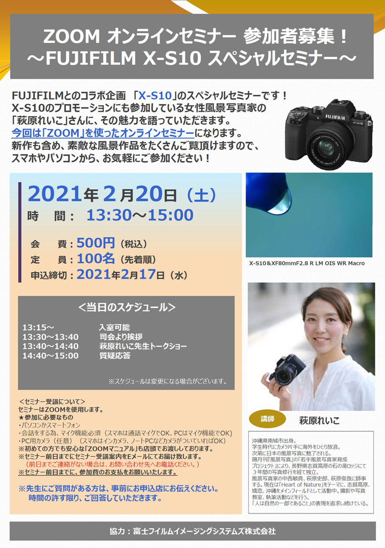 FUJIFILMとのコラボ企画「X-S10」のスペシャルセミナーです。