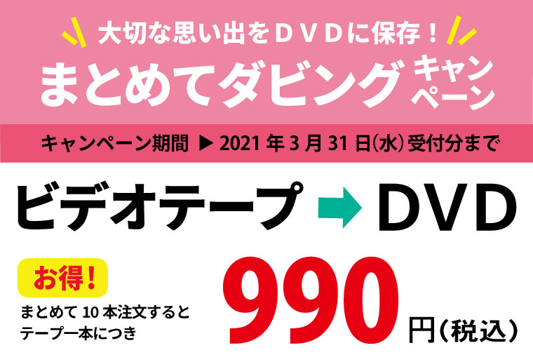 大切な思い出のつまったビデオテープ、まとめて5本以上のご注文でお得なキャンペーン開催中!