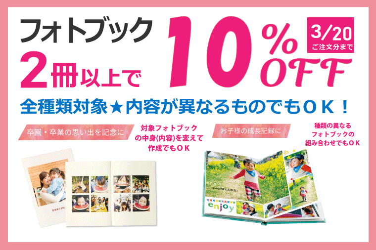 【卒業・送別の贈り物や記念品に】フォトブック2冊以上で10%OFFキャンペーン開催中!