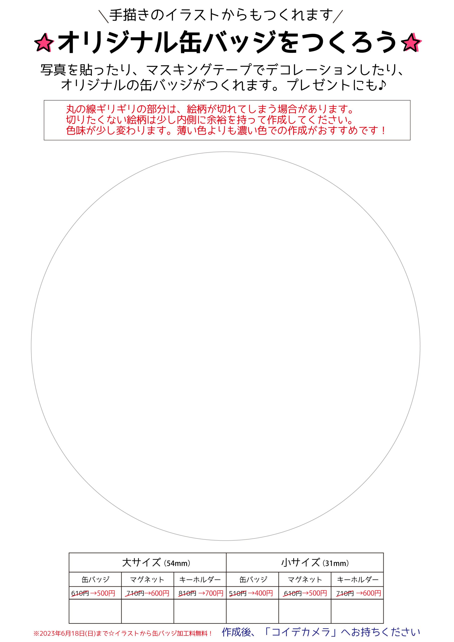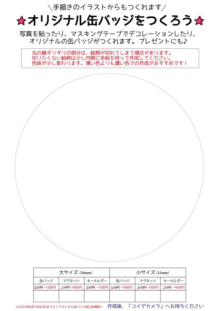 - 似顔絵缶バッジ用のシートを「ダウンロード」ボタンから表示、スマホ(パソコン)に保存してください