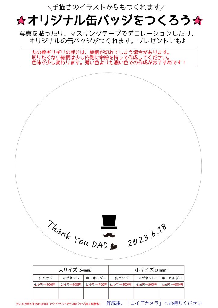 「父の日限定デザイン」「無地」手描きシートは店頭、ダウンロードしてご利用ください。