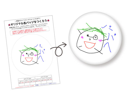 写真だけでなく似顔絵やイラストからもオリジナル缶バッジが作れます!