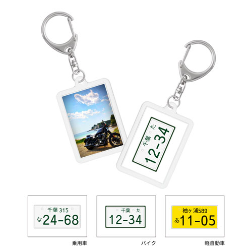 自慢の車(バイク)写真とナンバープレート風のキーホルダーが作れます。