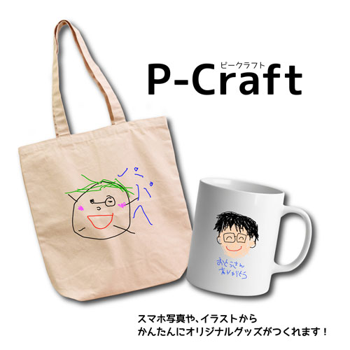 お父さんへのプレゼントにオススメの「マグカップ」をはじめ、トートバッグ大・小、湯呑が作れます。
