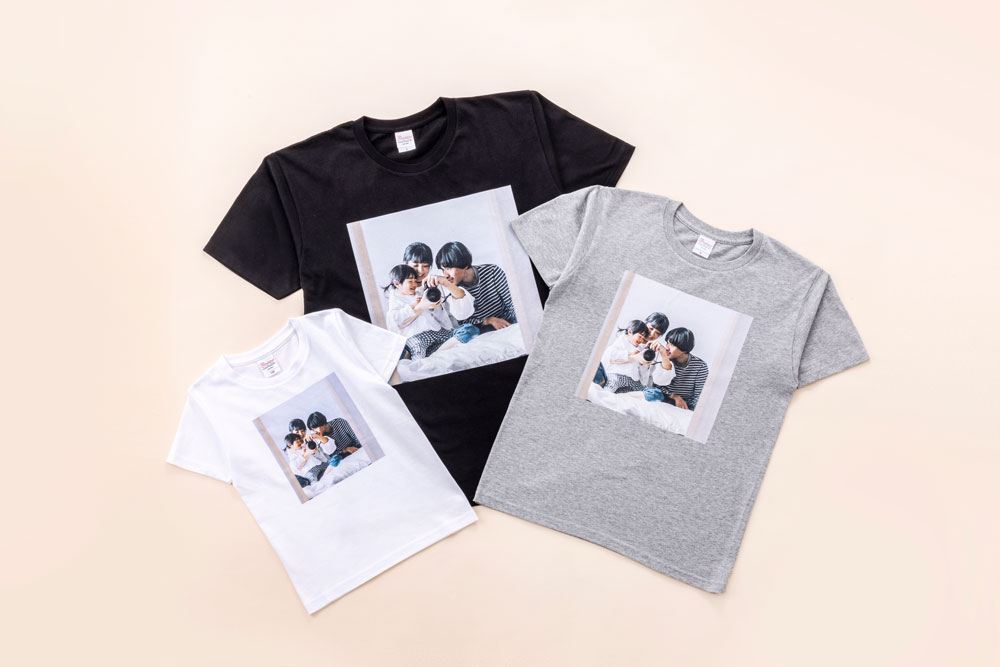 お手持ちの写真やお子さまのイラストなど、お好きな写真を1枚からTシャツにできるサービスです。