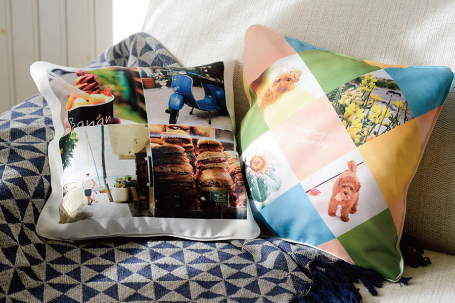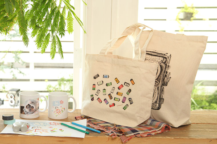 画像データからつくれるフォトグッズでは、マグカップのほか、トートバッグ、クッション、Tシャツなどオリジナルのものがつくれます。