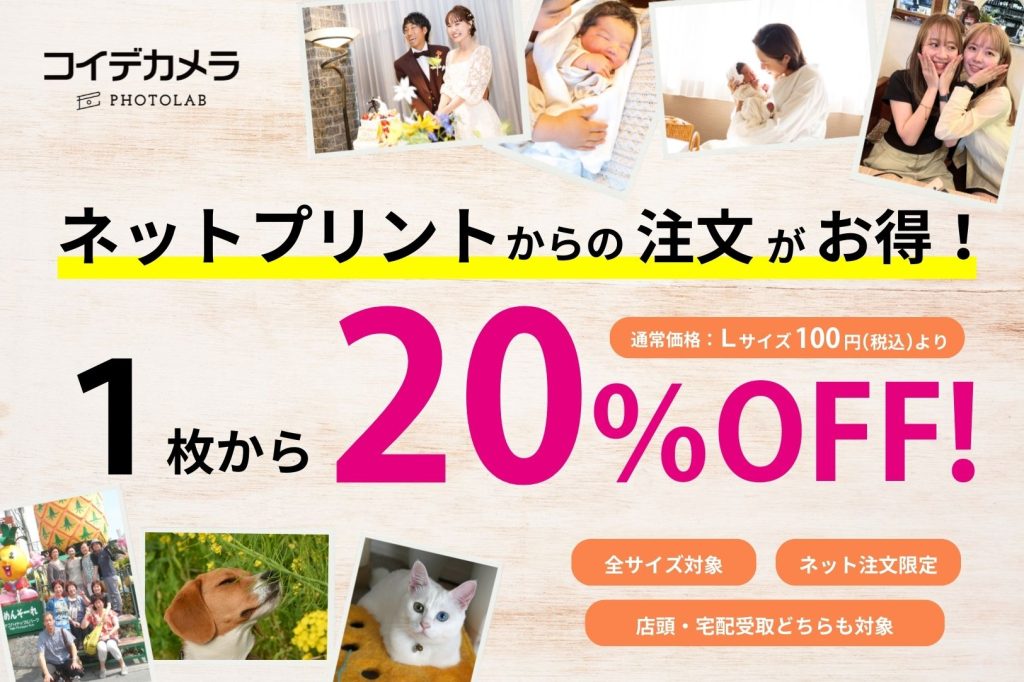 スマホ・デジカメプリントのネット注文が、全サイズ1枚から20%OFF!