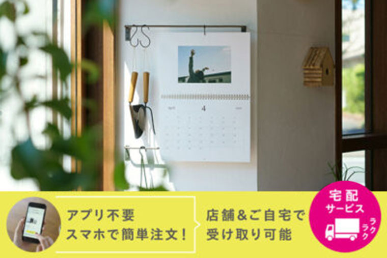 PDAY(ピーデイ)は、卓上、壁掛けのカレンダーが作成できるサービスです。スマホやパソコンから簡単に注文でき、店頭受け取りなら当日(最短45分〜)仕上がります。