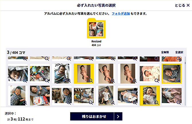 というお悩みをもつ方に、簡単に写真選びができるアシスト機能のついたアルバム作成サービスです。