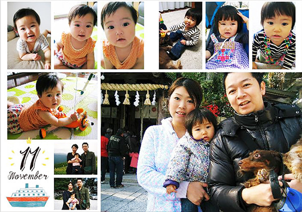 お子さまの成長がわかるように時系列で写真を配置し、それぞれのページに入る写真枚数や画像の向きに合わせて最適なレイアウトを短時間で行います。おすすめの写真は大きく表示して、メリハリのあるレイアウトでご提案。編集画面で写真の配置やレイアウトパターンの変更もできます。