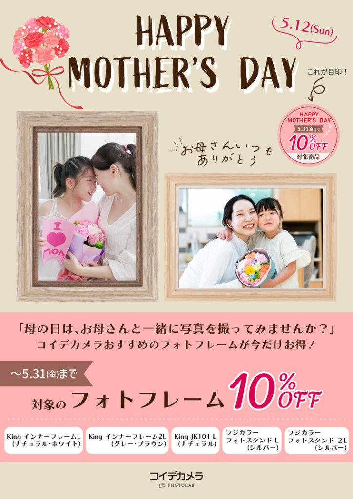5月はお母さんと一緒に撮った写真をお家に飾ってみませんか。