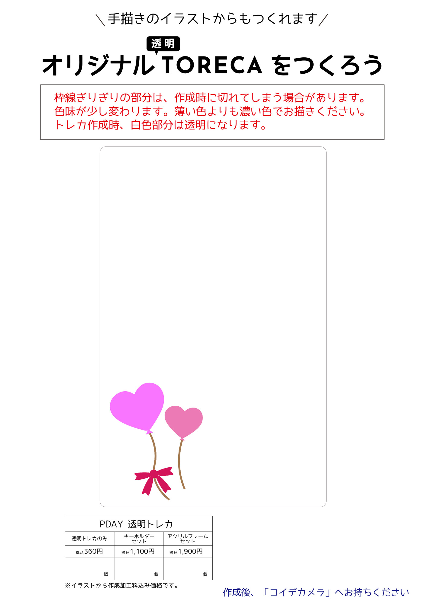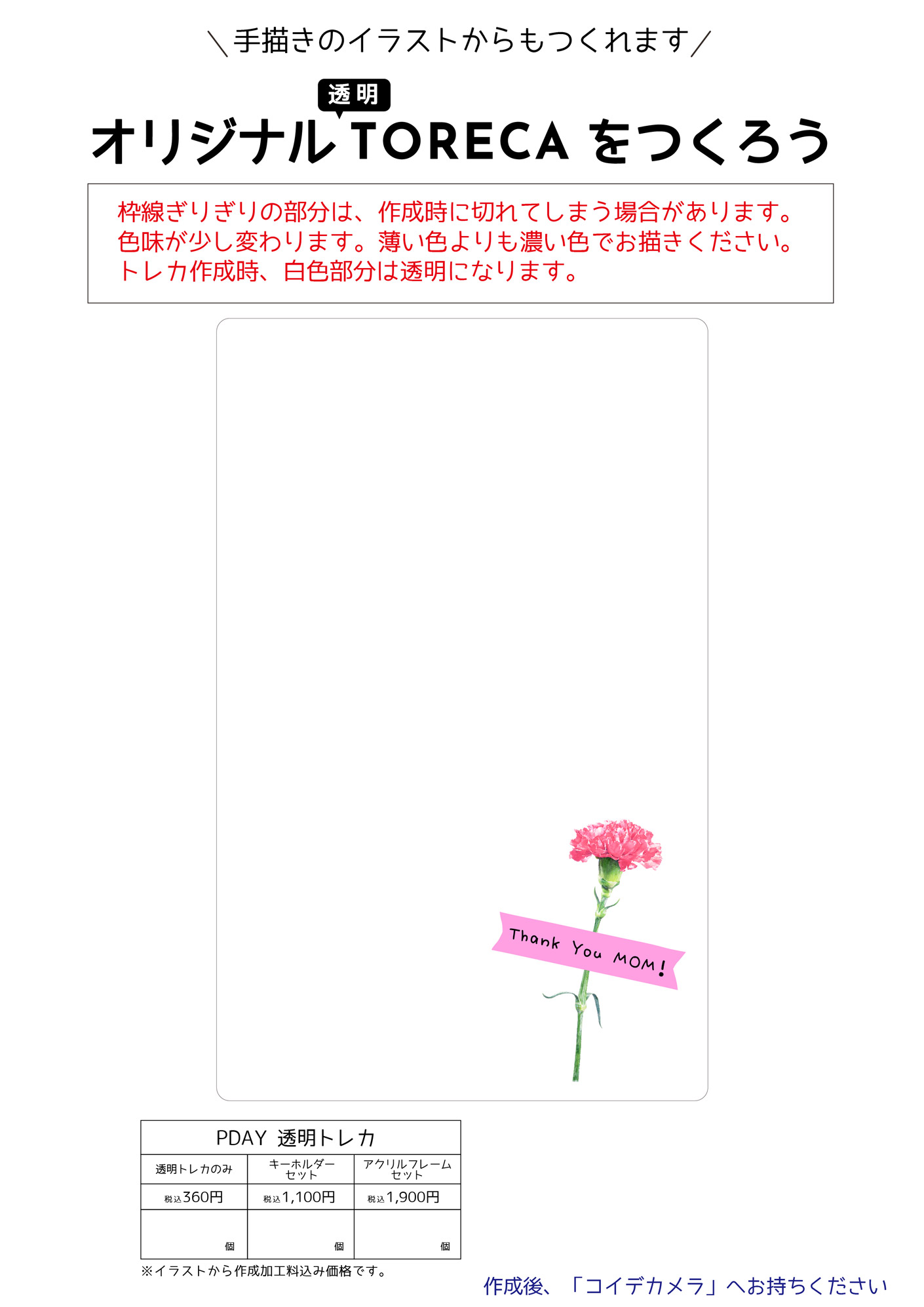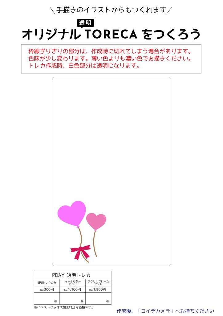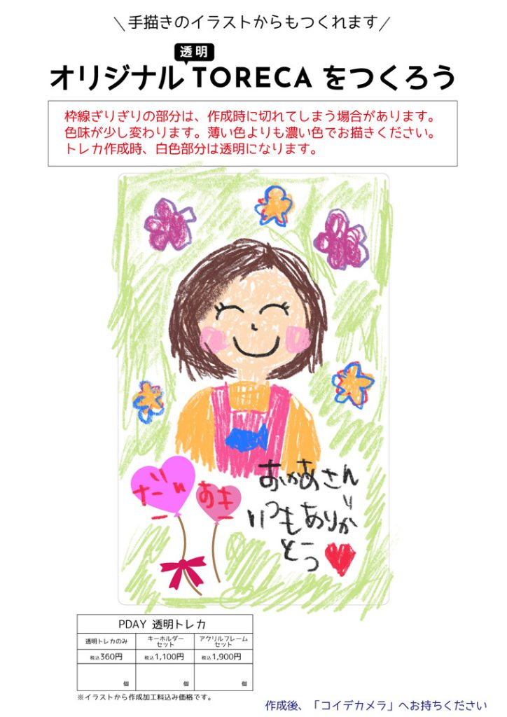 写真だけでなく似顔絵やイラストからもオリジナル透明トレカが作れます!