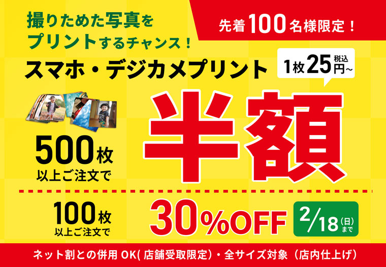 スマホ写真プリント500枚以上ご注文で「半額」キャンペーン