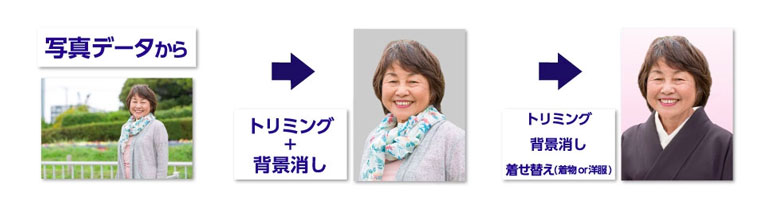 写真からでもデータからでも背景消し、着せ替えも最短3時間仕上げより!