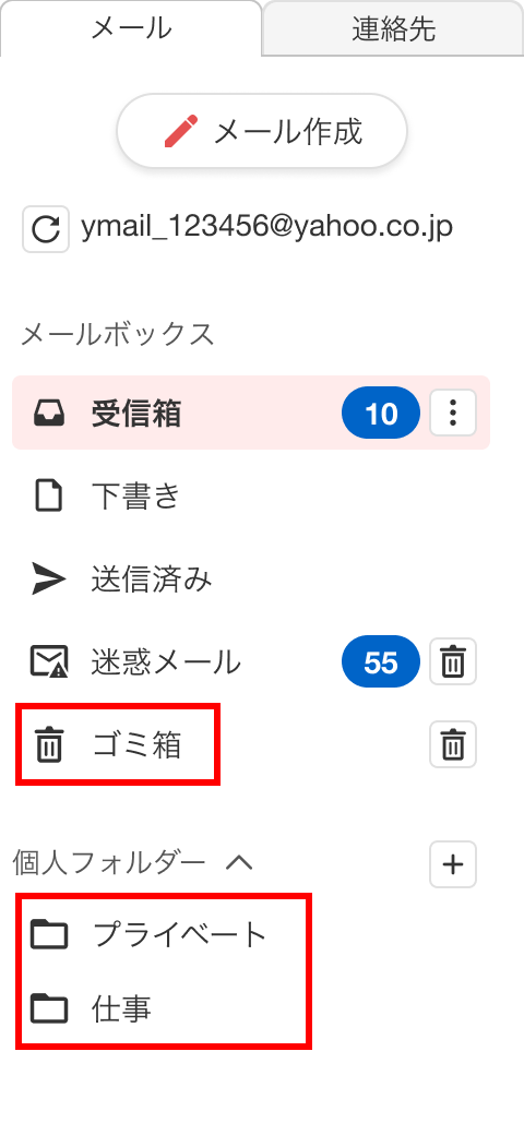 探しているメールが、[ゴミ箱]フォルダーなど、[受信箱]以外のフォルダーに入っていないかご確認ください。また、フィルターの設定を確認、変更する場合は、「受信メールを指定フォルダーに振り分ける(フィルター)」をご覧ください。