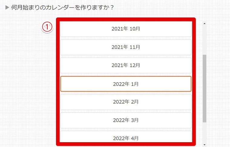 ①から始まり月を選ぶ。