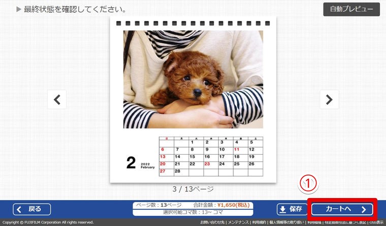 ②「仕上がり確認」をクリック。
