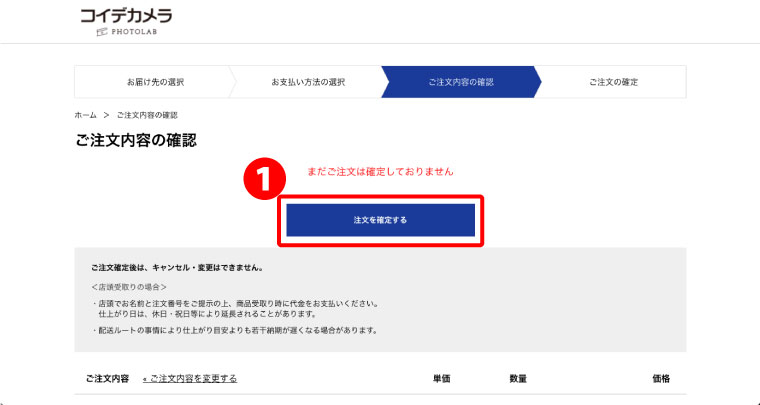 ご注文の内容に問題なければ、❶「注文を確定する」をクリック。