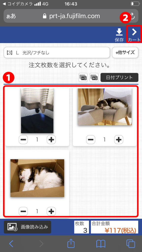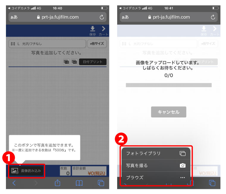 ※写真を複数選択してるのに、1コマしかアップロードされない場合は、こちらの対処法をご確認ください。