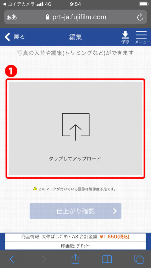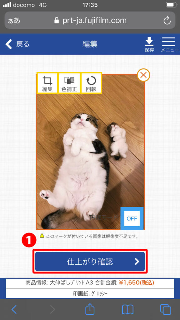 画像を確認し、問題なければ❶「仕上がり確認」をタップする。