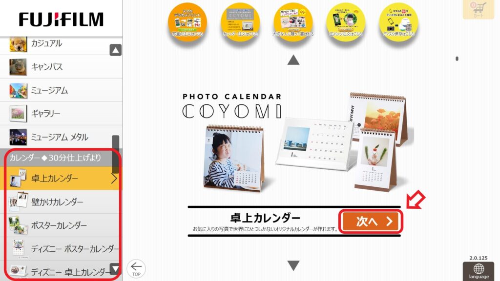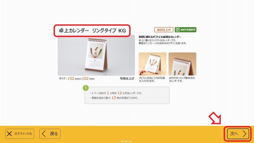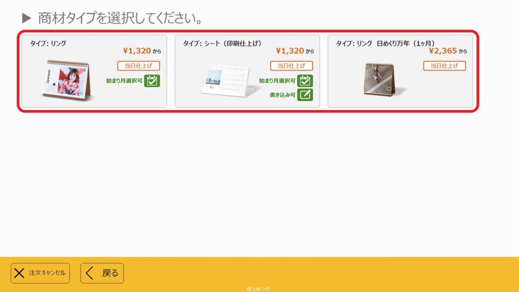① 作成したいフォトカレンダーのタイプを選ぶ