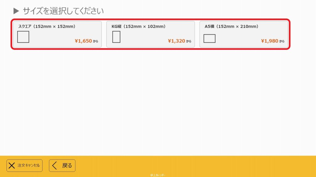 ②作成するサイズを選ぶ ※ここではKG縦を選択